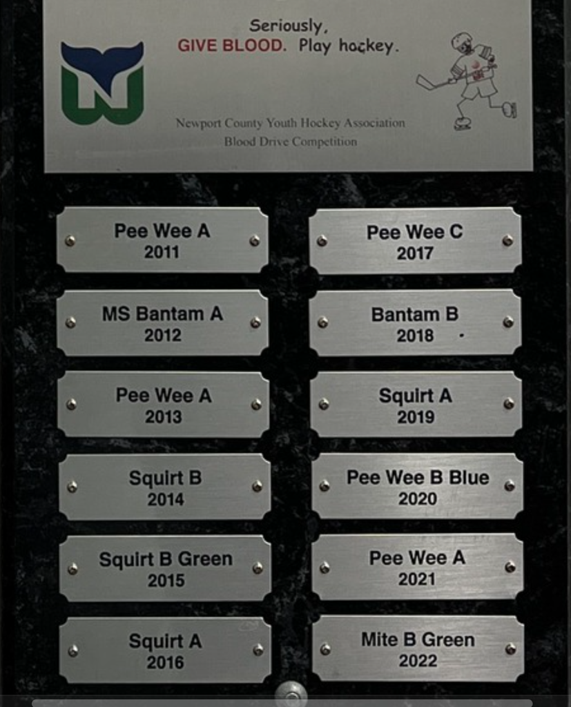 Past Team Winners! Most blood donated wins a sheet of ice!